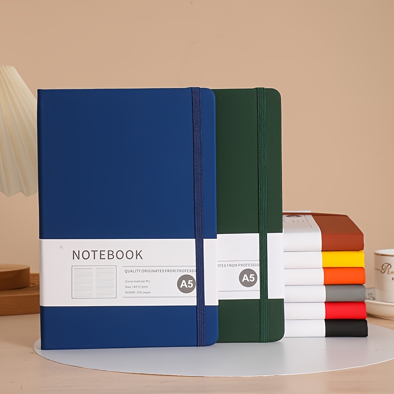 Notebook with High-quality PU Cover, 100 Sheets of A5 Size 80gsm Beige Mulberry Paper, and an Elastic Band in the Same Color. Suitable for Daily Office Use